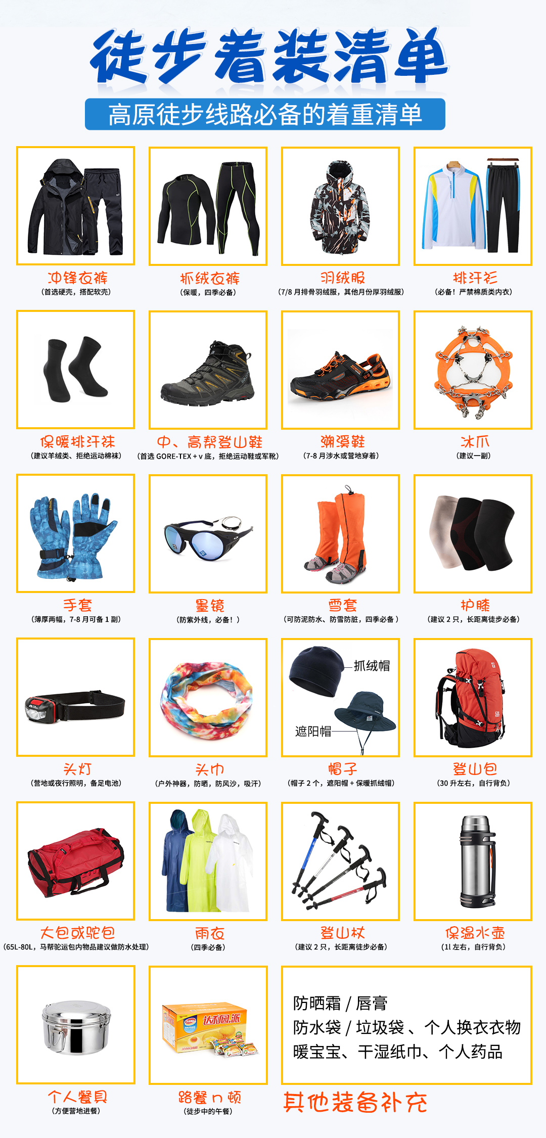 3、个人常用药(根据个人的身体状况,酌情携带。高原上医药条件落后,请备足所需剂量)