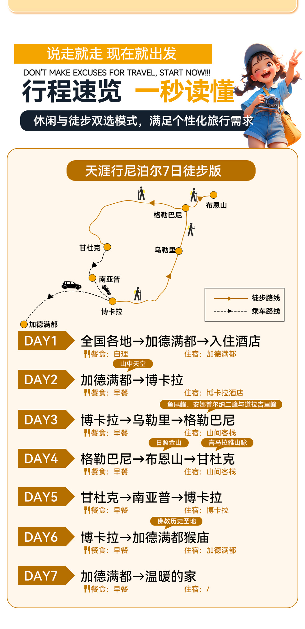 徒步版详细行程安排: