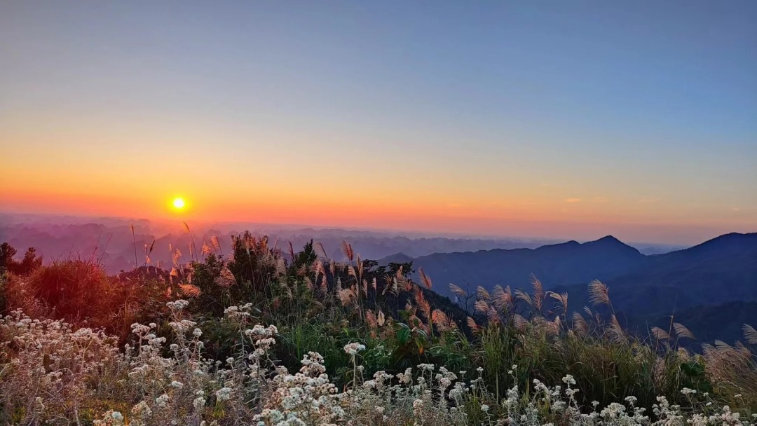 靖西乌鸦山地处古龙山山脉主峰,海拔约1233米,山体由花岗岩构成,几座连绵起伏的浑圆状山坡构成了其独特的地貌。这里是一处尚未被商业开发的天然秘境,以其原生态的高山草甸和季节分明的自然景观而闻名,被誉为“广西小瑞士”,徒步登山是主要的游览方式,从陇庇屯出发,沿途穿过清香八角林和原始森林,约一小时可登顶。山顶视野极为开阔,可360度环视层叠峰林,遇到云海时景色更为壮观。