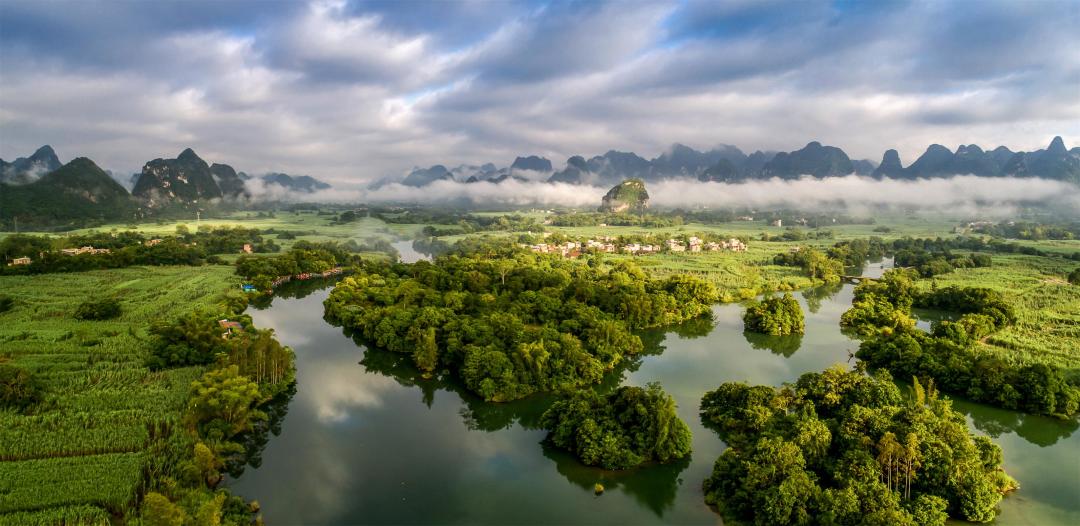 明仕田园位于广西大新县堪圩乡,是典型的喀斯特地貌田园风光带。5公里徒步线路穿行于如诗如画的稻田、翠竹、溪流与壮族村舍之间,远眺峰林倒映水中,近听鸟鸣蛙唱,四季景色各异——春有油菜花海,夏为碧绿稻浪,秋染金黄田野,冬显静谧水墨意境。沿途可探访壮族民居、体验农耕文化……